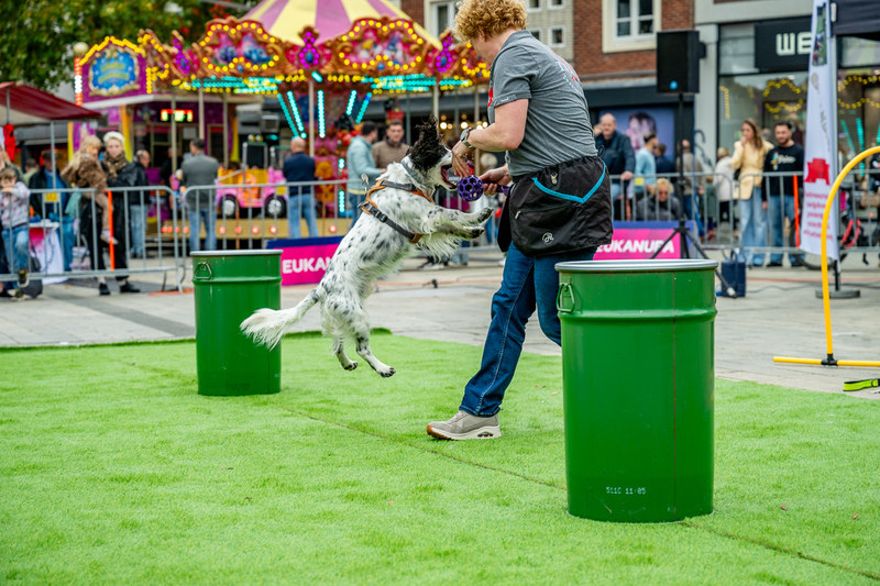 Zondag 12 oktober, presenteerde de Twentse Kynologen Vereniging zich op het Van Heekplein in Enschede aan het talrijke publiek.